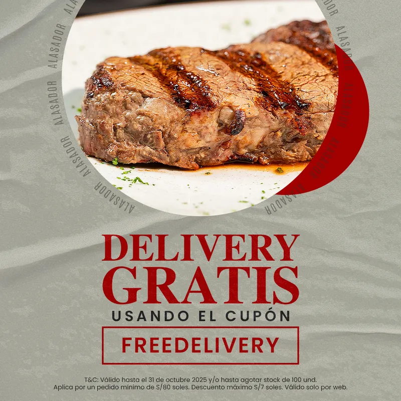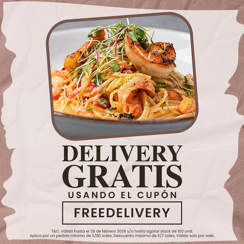 Por consumo mínimo de S/.80.00, ingresando el cupón FREEDELIVERY al momento del pago.